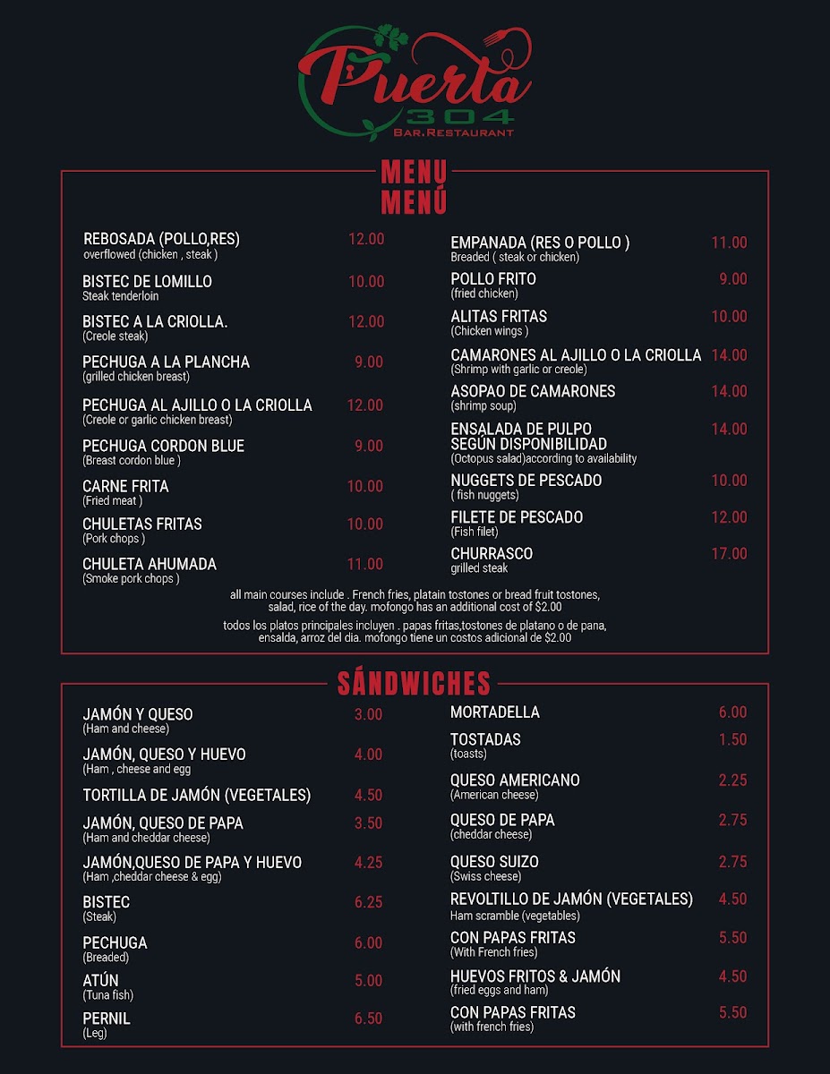 Welcome to PUERTA 304, a culinary gem nestled in the vibrant heart of San Juan, Puerto Rico. This welcoming eatery stands out not just for its flavorful dishes but for its inviting atmosphere and exceptional service. Patrons like Ben and Wendy have praised the friendly staff, with Alberto setting a personable tone that makes every visit memorable.